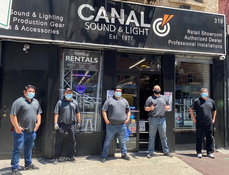Our Retail Showroom is located in downtown Manhattan on Canal Street (between Mercer and Greene Streets). We have owned and operated our New York City retail shop since 1977 and have over 2000 square feet of retail space, featuring 100+ speakers and 100+ lights available for immediate demo. We carry all kinds of live sound and production gear for engineers, installers, and end users alike. When you call, you will be speaking with someone in our retail store or e-Commerce department, also in our store!
