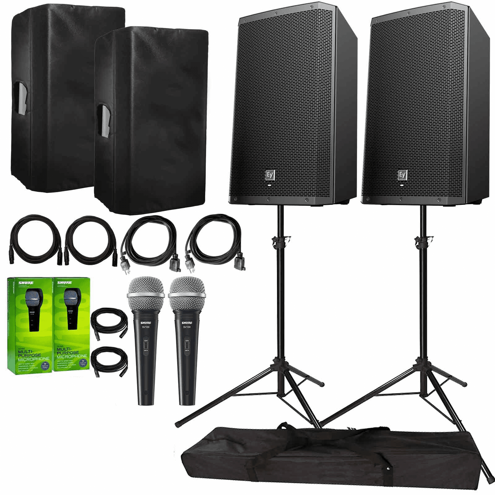 Electro-Voice ZLX-15BT Active 15″ Bluetooth Speaker Package with 2x Microphones, Cables, Covers, & Stands